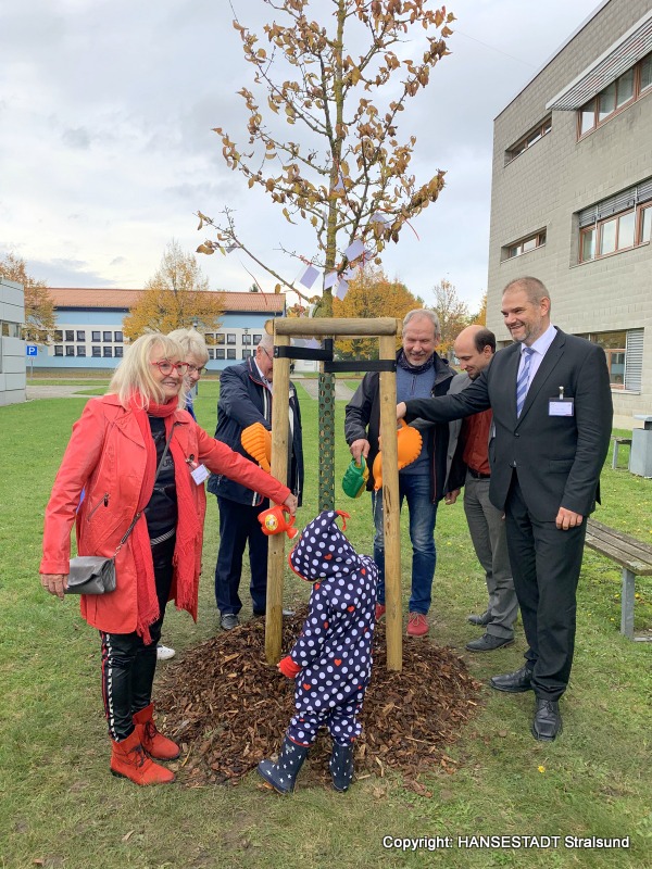 "Ich wünsche mir, dass möglichst viele Studentinnen und Studenten nach ihrer Hochschulausbildung in Stralsund bleiben. Am besten maximal 15 Minuten von der Hochschule entfernt, damit der Baum, der heute gepflanzt wurde, schnell zu erreichen ist, um ihn zu pflegen" sagt er mit einem Augenzwinkern.