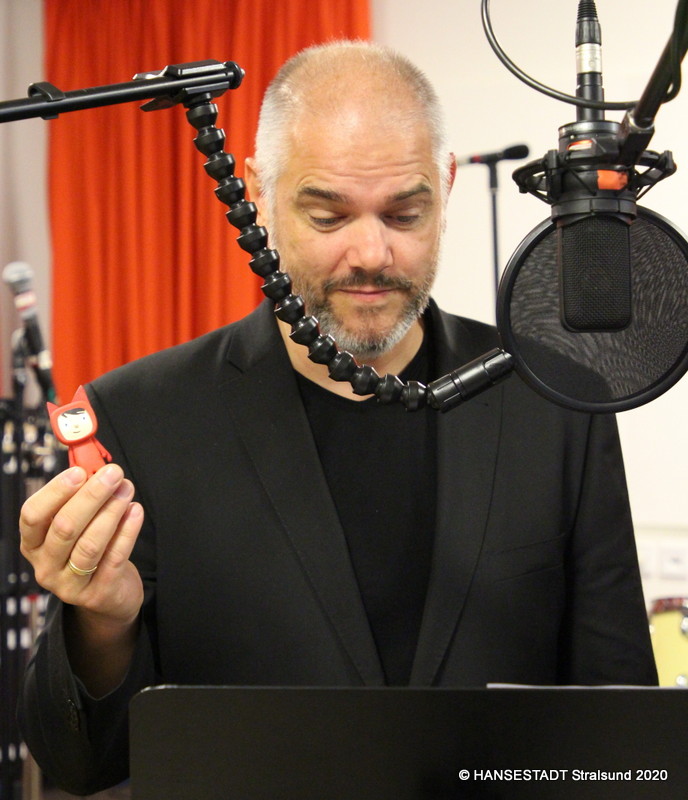 Dazu war er extra im Tonstudio der Musikschule und hat dort die Geschichten aus „Marte und das Meer – von pupsenden Fischen und schwimmenden Steinen“ von Autor Carsten Otte eingesprochen. Diese gibt es ab 20. November als Hörbuch-Tonie exklusiv zum Ausleihen und nur in der Kinderbibliothek Stralsund.
