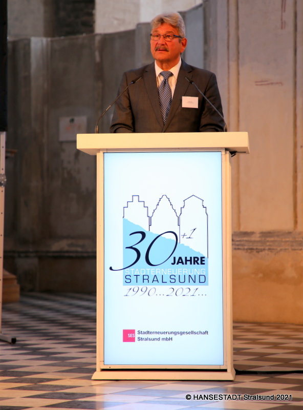 Heute (9. September 2021) erhielt Peter Boie, ehemaliger Geschäftsführer der Stadterneuerungsgesellschaft Stralsund mbH, das Ehrenbürgerrecht der Hansestadt Stralsund. Die Auszeichnung fand im Rahmen der Festveranstaltung 30 +1 Jahre der Stadterneuerungsgesellschaft Stralsund mbH in der Kulturkirche St. Jakobi statt.