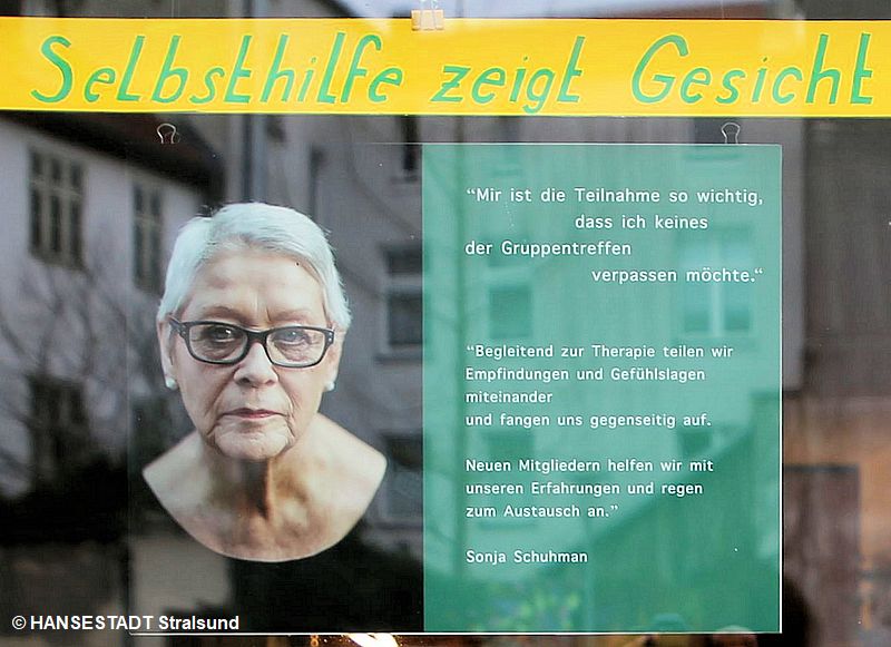"Die sehr schönen Ergebnisse des Projektes präsentieren wir ab sofort in der KISS in Form der 'Selbsthilfegruppe des Monats', freut sich Anke Landgraf, Leiterin der KISS Stralsund, über die Fotoserie. "Wer an unseren Räumlichkeiten in der Mönchstraße 17 vorbeigeht, wird jeden Monat ein neues Fotoelement in einer Fenstergestaltung sehen können", lädt sie ein, sich Bild und Text dann anzuschauen.