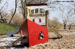 Das steht direkt auf dem Spielplatz am "Bananenweg", wie die Strecke entlang des Teiches auch genannt wird, auf Höhe der Mühlenbastion.