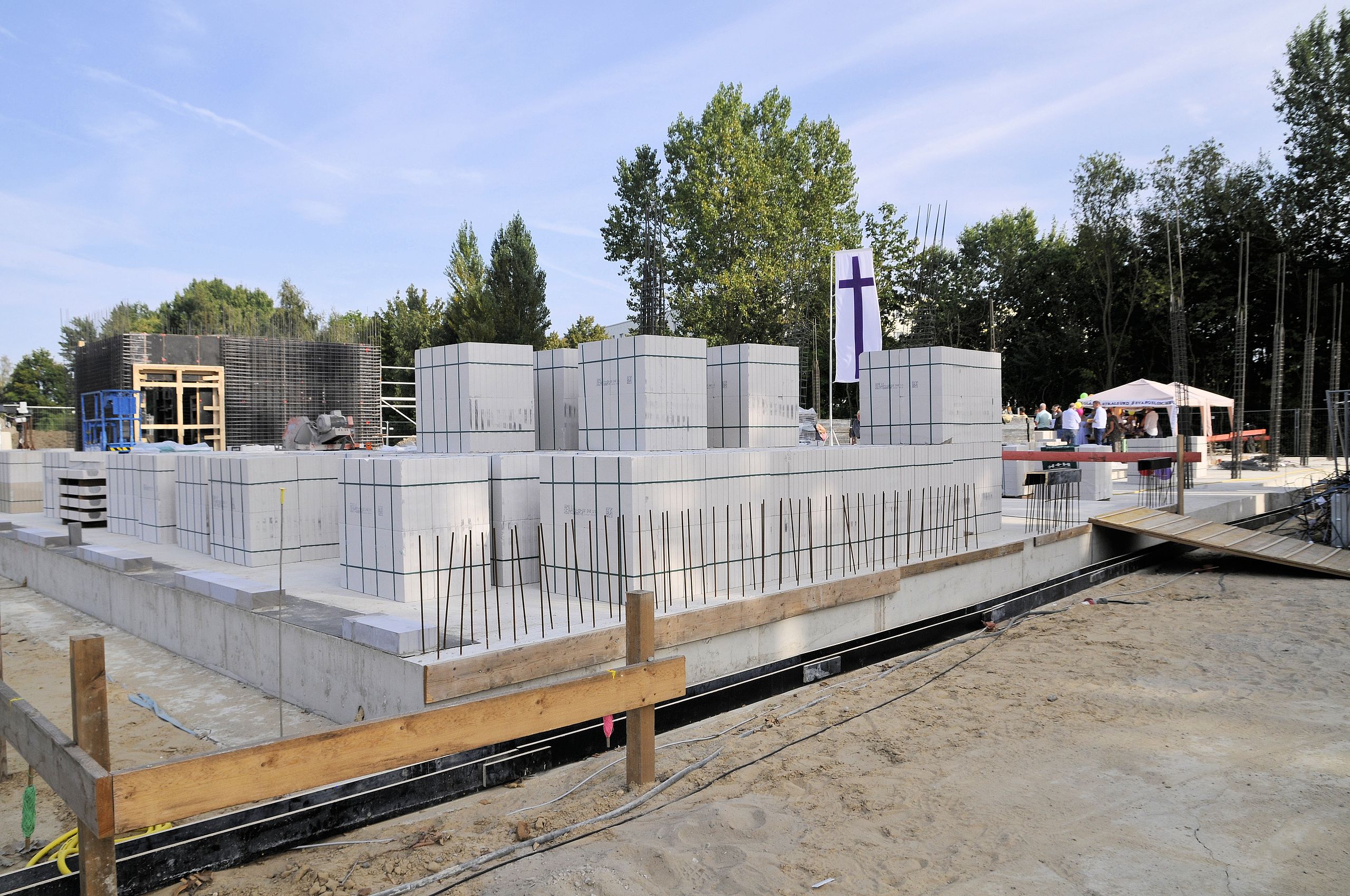 Die Grundsteinlegung wurde durch ein „Blechbläser-Ensemble“ unter Leitung von Kirchenmusikdirektor Matthias Pech begleitet. Nach den Grußworten an die knapp 100 Anwesenden wurde eine Zeitkapsel in den Grundstein eingelassen.