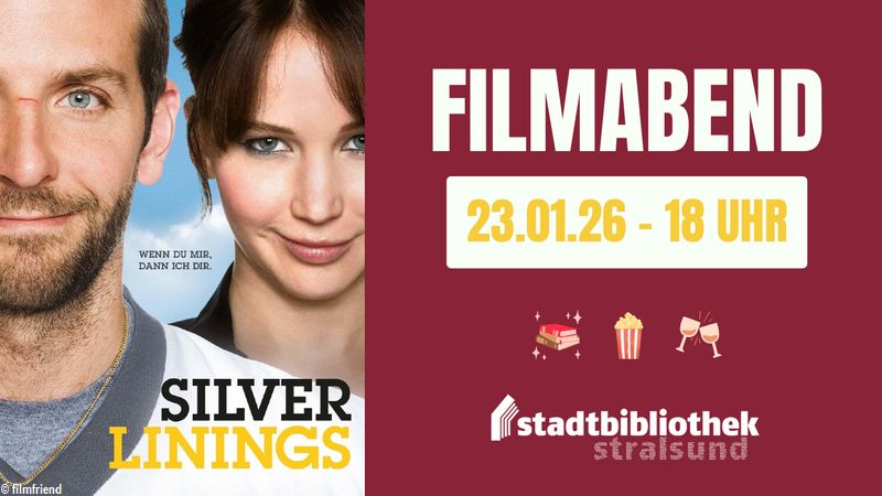 Die Stadtbibliothek Stralsund lädt zu sechs Filmabenden im Jahr ein. Zu sehen sind Buchverfilmungen und Wohlfühlfilme aus dem Angebot der Streamingplattform filmfriend, dem Video-on-Demand-Service für Bibliotheken.